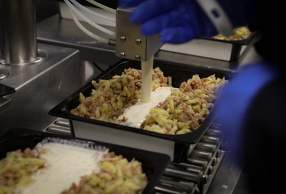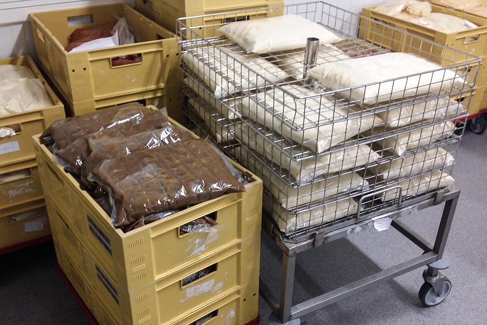 Sealed bags are chilled and then stored for up to a month before use. The transfer can be done in big batches at suitable time. Ease of production and of logistic management is the result of cook and chill production method.